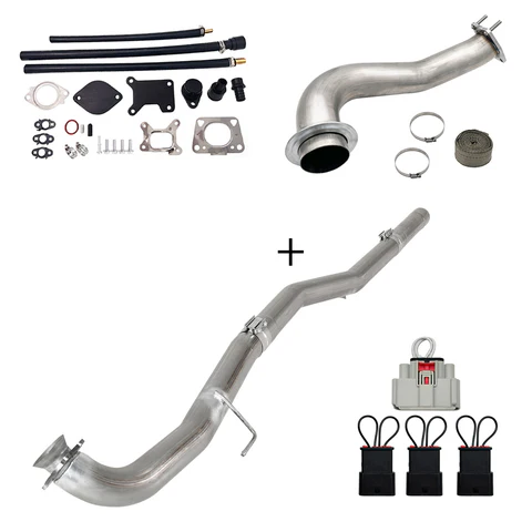 An egr delete kit is a kit that is installed to delete or bypass the factory EGR system. It usually consists of block off plates, upgraded piping, and electronic tuning software in order to re-calibrate the engine control module. Diesel delete kits can also alter or eliminate other emission related parts in wider forms.