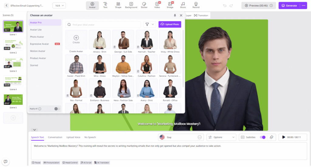 • Finally, click on the “Generate” button to begin the video creation process. Within seconds, your video will be ready and available for download.